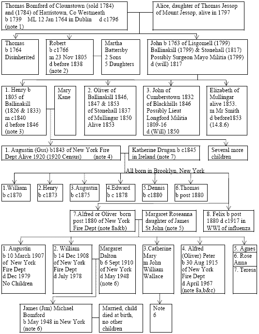 1. The family tree of “Bomford of Cushinstown, Co Meath” which has been used extensively in these records; in particular it shows the relationship and offspring of Robert Bomford who became Robert Bomford-Jessop.
