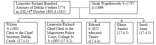 Wilson of Dublin Castle, b c1802, Launcelot Richard of Police Court, Edward, born 1822, Elinor Amelia, & Sarah Anne: children of Launcelot Richard, attorney of Dublin (17.4)