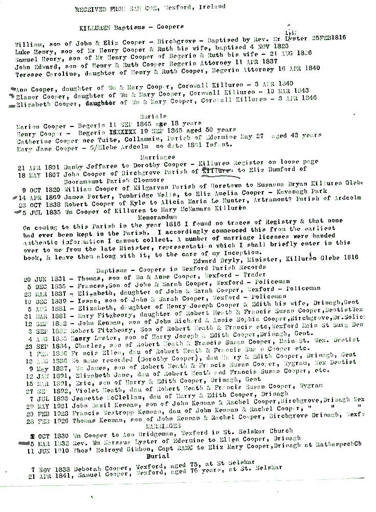 William Benjamin, b c1875, shoemaker of Mullingar (17.5.6) and his son John William Benjamin 1905 - 1975 and daughter Letitia died 1927 unmarried.