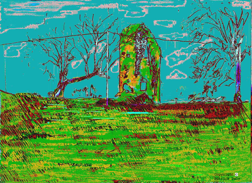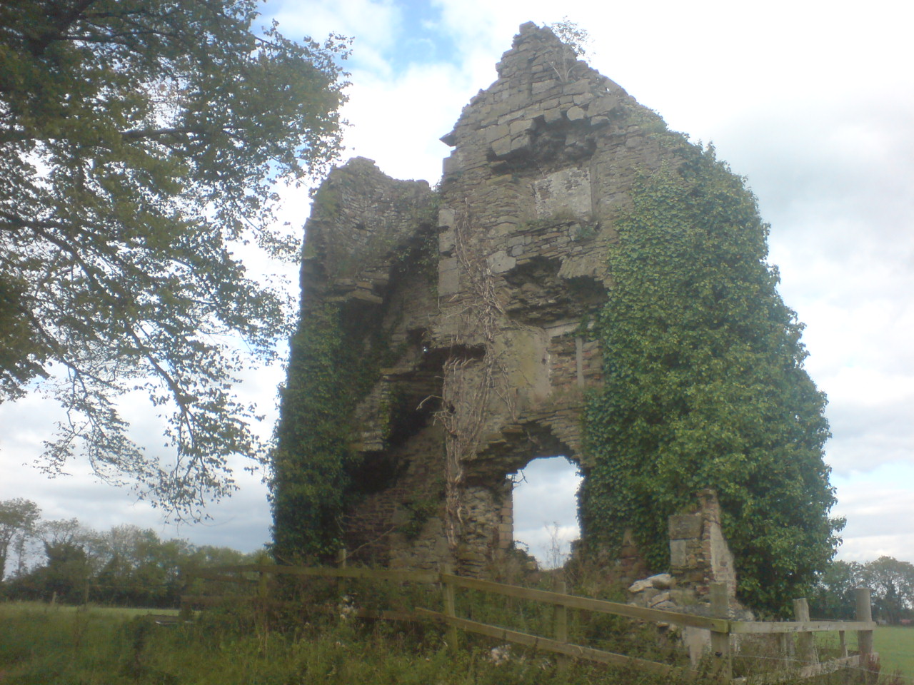 Bishop Jones sold Agher to Pratt at the end of the 1650s. This Pratt was probably Richard of Leicestershire who supported Cromwell with money in 1641 and so was one of the ‘Adventurers’. For his support of the Commonwealth, Richard was given Garadice and his eldest son Joseph was recorded in the Trinity Register as “Armigar De Garradice” (Esquire of Garadice); and Joseph’s four sons were born there between 1666 and 1680. In 1640 the Down Survey records that there was ‘a castle’ in Garadice and this was no doubt the house of the Pratts (photo, sketch, both by Patrick Daly (emails Aug 2011)). It is a townland of 573 statute acres between Drumlargan and Gallow, with a neck which stretches west almost to Agher, and in 1836 was still a Pratt property.