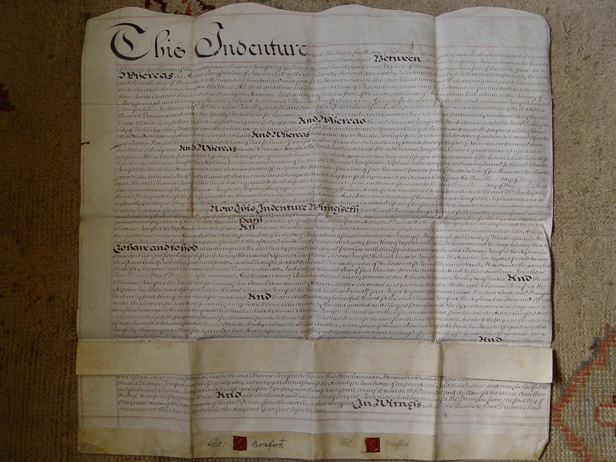Marriage settlement Stephen Bomford & Elizabeth Sibthorpe 18 April 1745. |