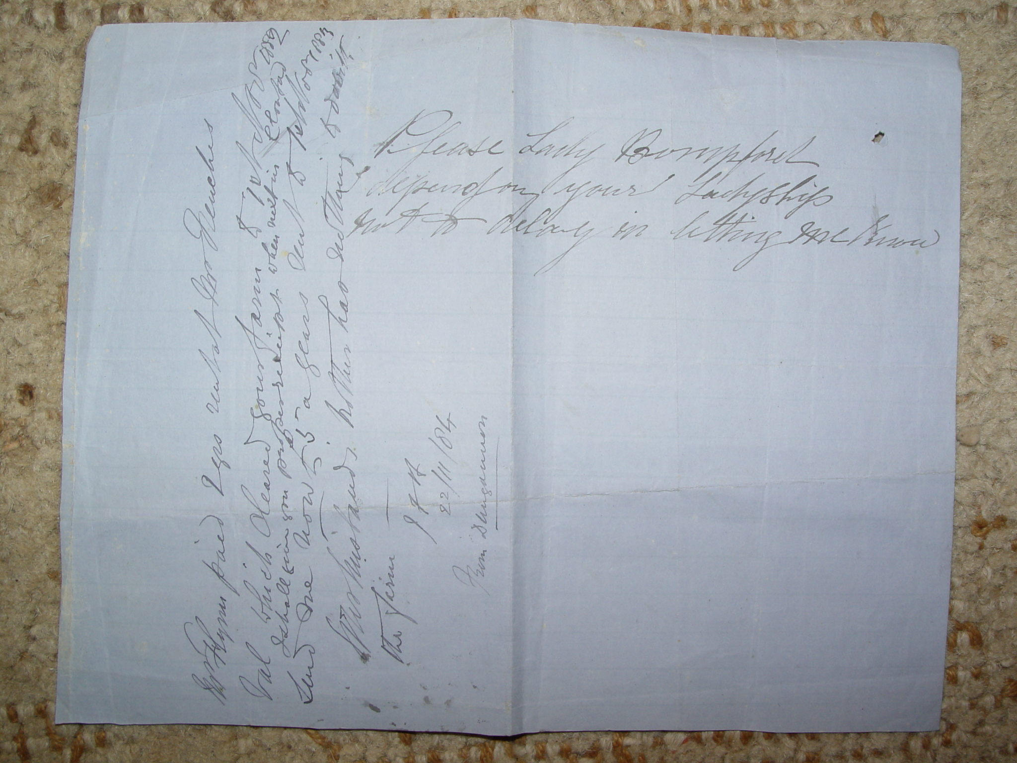 Letter from Mary Gaynor at Clonfad to Lady Elinor Bomford re rent, dated 18 November, with annotation by John Francis Bomford dated 22 November 1884. |