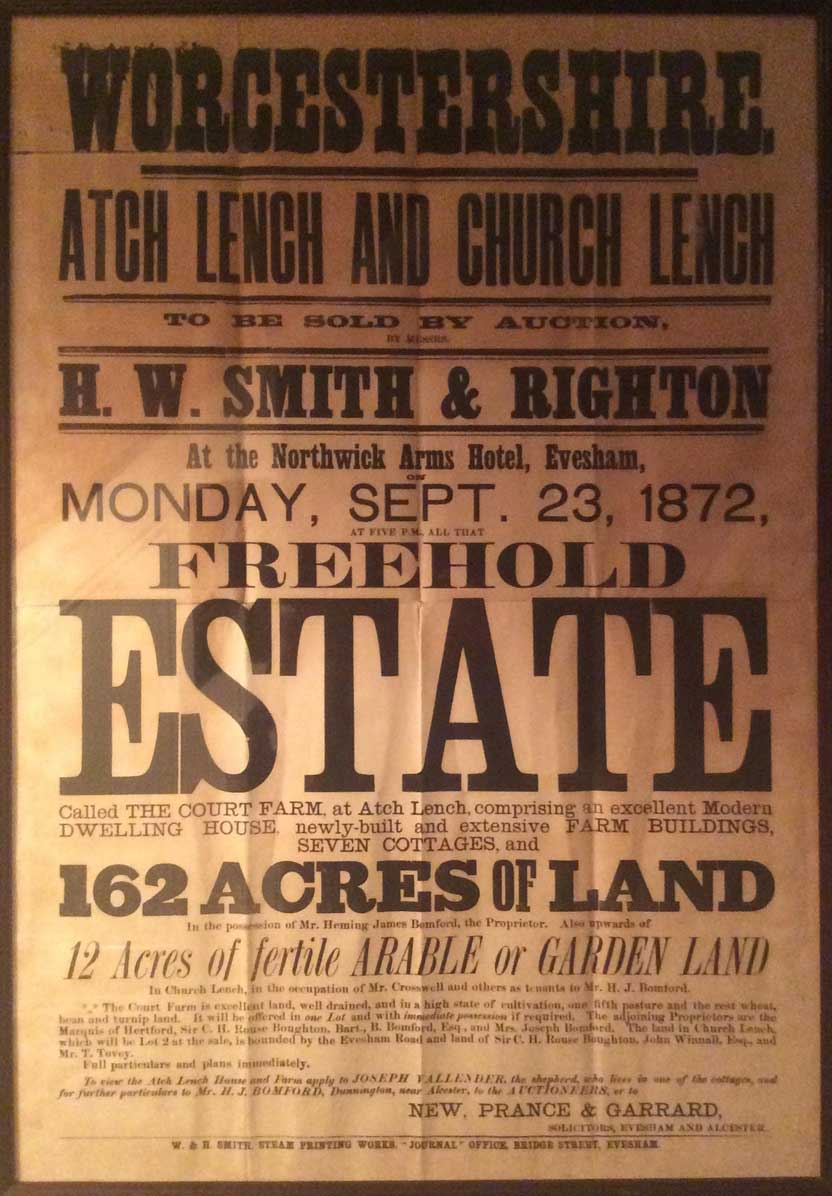 In 1779 Heming Bomford occupied the whole of the Manor at Atch Lench. Of his five sons Benjamin in 1813 took over his parents home at The Firs (he was the father of Benjamin of Pitchill).