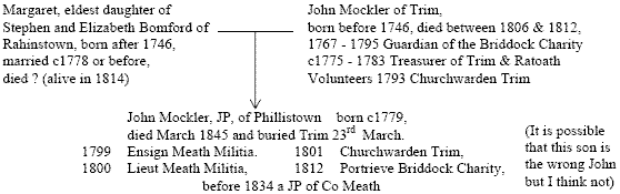 a. Thomas Mulock of Kilnagarna, born 1746, married 1790 and died 1827. He became a barrister. There were a number of children and it was his third daughter who married Toriano L’Estrange (see above) the great-grandson of Stephen Bomford of Gallow.