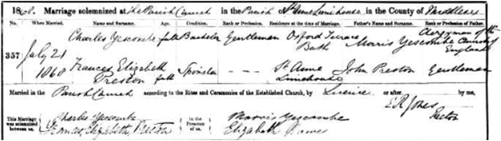From this one can assume that the marriage took place in Dublin and most likely from Gardiner’s Place. Mary Anne was married as a minor aged 20 or younger and her guardian George Bomford no doubt gave her away.