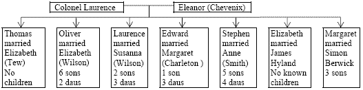 4. Sarah married Rev John Harrison. Their daughter, Susanna, married John L’Estrange of Keoltown, Co Westmeath, and Susanna’s great grandson was Samuel L’Estrange who married Anne Bomford in 1750 (see L’Estrange tree 8.5.2)